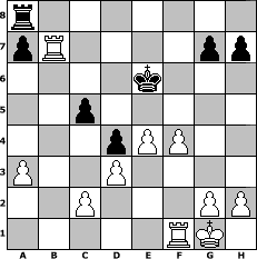 | Partie-Notation im PGN-Format [Event "HSF- Clubmeisterschaft 2013/14, Gruppe B"] [Site "www.mySchach.de"] [Date "2013.09.04"] [Round "1"] [White "Kerendar"] [Black "reisender"] [ECO "C50"] [WhitemyELO "1411"] [BlackmyELO "1456"] [Result "1-0"] [TimeControl "10/2592000"] [WhiteDays "30"] [BlackDays "30"] [MySchachNr "90029"] 1. e4 e5 2. Nf3 Nc6 3. Bc4 b6 4. d3 Be7 5. a3 Bb7 6. Nc3 Bf6 7. b4 Nd4 8. Bb2 Nxf3+ 9. Qxf3 d6 10. O-O Ne7 11. Qe2 Ng6 12. Nd5 O-O 13. Bc1 c6 14. Ne3 d5 15. Ba2 Nf4 16. Qf3 d4 17. Ng4 Bg5 18. Nxe5 c5 19. Bxf4 Bxf4 20. Qxf4 Qe7 21. Nxf7 Rxf7 22. Bxf7+ Qxf7 23. Qxf7+ Kxf7 24. f4 Kf6 25. bxc5 bxc5 26. Rab1 Ke6 27. Rxb7 1-0 Stellungs-Notation im FEN-Format r7/pR4pp/4k3/2p5/3pPP2/P2P4/2P3PP/5RK1 - - - 0 27 Geschlagene Figuren Weiss:                              Geschlagene Figuren Schwarz:                               Klicken Sie auf eine geschlagene Figur um den gewünschten Zug darzustellen!