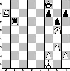 Partie-Notation im PGN-Format [Event "Herbstturnier 2022"] [Site "www.mySchach.de"] [Date "2022.09.26"] [Round "1"] [White "Rotstift10"] [Black "muellerh"] [ECO "D03"] [WhitemyELO "1638"] [BlackmyELO "1540"] [Result "1-0"] [TimeControl "10/1728000"] [WhiteDays "73"] [BlackDays "70"] [MySchachNr "127269"] 1. d4 d5 2. Nf3 Nf6 3. Bg5 e6 4. Bxf6 Qxf6 5. e3 c5 6. c4 dxc4 7. Bxc4 cxd4 8. Qxd4 Qxd4 9. exd4 Nc6 10. O-O Bd6 11. Nbd2 a6 12. a3 b5 13. Ba2 Bb7 14. Rfe1 O-O 15. d5 exd5 16. Bxd5 Rab8 17. Rac1 Na5 18. Bxb7 Rxb7 19. b4 Nc4 20. Nxc4 bxc4 21. Rxc4 Re7 22. Kf1 g6 23. Rc6 Rxe1+ 24. Kxe1 Re8+ 25. Kf1 Bf4 26. Rxa6 Rc8 27. g3 Bc1 28. b5 Rb8 29. a4 Ba3 30. b6 Kf8 31. a5 Bc5 32. Ra7 Bxb6 33. axb6 Rxb6 34. Ng5 1-0 Stellungs-Notation im FEN-Format 5k2/R4p1p/1r4p1/6N1/8/6P1/5P1P/5K2 - - - 1 34 Geschlagene Figuren Weiss: Geschlagene Figuren Schwarz: Klicken Sie auf eine geschlagene Figur um den gewünschten Zug darzustellen!