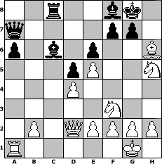 Partie-Notation im PGN-Format [Event "Frühling 2019"] [Site "www.mySchach.de"] [Date "2019.05.10"] [Round "1"] [White "kalle"] [Black "reisinger"] [ECO "B20"] [WhitemyELO "1634"] [BlackmyELO "1440"] [Result "1-0"] [TimeControl "10/1728000"] [WhiteDays "53"] [BlackDays "60"] [MySchachNr "114967"] 1. e4 c5 2. d4 cxd4 3. c3 Nc6 4. cxd4 e6 5. Nf3 d5 6. e5 Nge7 7. Bd3 Nb4 8. O-O Nxd3 9. Qxd3 a6 10. Bg5 Bd7 11. Nc3 Qb6 12. Rfc1 Nc6 13. Na4 Qa7 14. a3 h6 15. Be3 b5 16. Nc3 b4 17. axb4 Nxb4 18. Qd2 Be7 19. Na4 O-O 20. Nc5 Bb5 21. Qxb4 Rfc8 22. Qd2 Rc6 23. Nd3 Rac8 24. Nf4 Ba4 25. Rxc6 Bxc6 26. Nh5 Bf8 27. Bxh6 1-0 Stellungs-Notation im FEN-Format 2r2bk1/q4pp1/p1b1p2B/3pP2N/3P4/5N2/1P1QPPPP/R5K1 - - - 0 27 Geschlagene Figuren Weiss: Geschlagene Figuren Schwarz: Klicken Sie auf eine geschlagene Figur um den gewünschten Zug darzustellen!