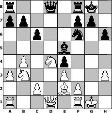 Partie-Notation im PGN-Format [Event "?"] [Site "www.mySchach.de"] [Date "2025.11.01"] [Round "?"] [White "faustballer"] [Black "Campino1986"] [ECO "A00"] [WhitemyELO "1455"] [BlackmyELO "1563"] [Result "*"] [TimeControl "10/2592000"] [WhiteDays "60"] [BlackDays "33"] [MySchachNr "133916"] 1. e3 e5 2. Bc4 d6 3. a3 Nf6 4. h3 d5 5. Be2 Bd6 6. Nf3 O-O 7. d3 c6 8. b4 Be6 9. Bb2 Nbd7 10. Nbd2 h6 11. O-O Bxh3 12. gxh3 e4 13. dxe4 dxe4 14. Bxf6 Nxf6 15. Nd4 Be5 16. N2b3 * Stellungs-Notation im FEN-Format r2q1rk1/pp3pp1/2p2n1p/4b3/1P1Np3/PN2P2P/2P1BP2/R2Q1RK1 b - - 3 16 Geschlagene Figuren Weiss: Geschlagene Figuren Schwarz: Klicken Sie auf eine geschlagene Figur um den gewünschten Zug darzustellen!