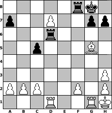 Partie-Notation im PGN-Format [Event "Helmut-Rahn-Gedenkturnier"] [Site "www.mySchach.de"] [Date "2003.08.28"] [Round "2"] [White "NoBody"] [Black "duc"] [ECO "D02"] [WhitemyELO "1502"] [BlackmyELO "1467"] [Result "1-0"] [TimeControl "10/3456000"] [WhiteDays "158"] [BlackDays "145"] [MySchachNr "946"] 1. d4 d5 2. Nf3 Nc6 3. e3 Nf6 4. Bd3 Nb4 5. O-O Nxd3 6. Qxd3 Ne4 7. Nbd2 Bf5 8. Qb5+ Qd7 9. Qxb7 Rd8 10. Ne5 Qc8 11. Qb5+ Bd7 12. Qxd5 Ng5 13. Nxd7 Nh3+ 14. gxh3 Rxd7 15. Qc6 e6 16. Nc4 f6 17. Qxe6+ Be7 18. d5 Rd8 19. Qxc8 Rxc8 20. e4 O-O 21. Kh1 c6 22. d6 Bd8 23. Rg1 c5 24. e5 fxe5 25. Nxe5 Bf6 26. Nd7 Rf7 27. Nxf6+ Rxf6 28. d7 Rcf8 29. Bg5 Rd6 30. Rad1 1-0 Stellungs-Notation im FEN-Format 5rk1/p2P2pp/3r4/2p3B1/8/7P/PPP2P1P/3R2RK - - - 4 30 Geschlagene Figuren Weiss: Geschlagene Figuren Schwarz: Klicken Sie auf eine geschlagene Figur um den gewünschten Zug darzustellen!