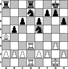 Partie-Notation im PGN-Format [Event "Herbstturnier bis 1600"] [Site "www.mySchach.de"] [Date "2025.10.14"] [Round "1"] [White "skuehnel"] [Black "faustballer"] [ECO "C00"] [WhitemyELO "1373"] [BlackmyELO "1445"] [Result "0-1"] [TimeControl "10/2592000"] [WhiteDays "83"] [BlackDays "90"] [MySchachNr "133743"] 1. e4 e6 2. Nf3 Bc5 3. d4 Bb6 4. Bc4 h6 5. O-O Nf6 6. Nc3 d5 7. Bb5+ c6 8. Ba4 dxe4 9. Ne5 Qxd4 10. Qxd4 Bxd4 11. Bf4 Nh5 12. Rfe1 Nxf4 13. Rxe4 Bxe5 14. Rxe5 Ng6 15. Re3 O-O 16. Rd1 a6 17. g3 Bd7 18. Ne4 a5 19. Nc5 Rd8 20. Red3 b5 21. Nxd7 Nxd7 22. Bb3 a4 23. Bxa4 Nge5 0-1 Stellungs-Notation im FEN-Format r2r2k1/3n1pp1/2p1p2p/1p2n3/B7/3R2P1/PPP1PP1P/3R2K1 - - - 1 24 Geschlagene Figuren Weiss: Geschlagene Figuren Schwarz: Klicken Sie auf eine geschlagene Figur um den gewünschten Zug darzustellen!