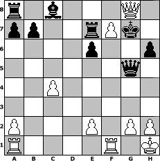 Partie-Notation im PGN-Format [Event "Ostern 2011"] [Site "www.mySchach.de"] [Date "2011.03.18"] [Round "1"] [White "Sanji"] [Black "Wulfen49"] [ECO "C01"] [WhitemyELO "1519"] [BlackmyELO "1462"] [Result "1-0"] [TimeControl "10/2592000"] [WhiteDays "28"] [BlackDays "89"] [MySchachNr "72815"] 1. e4 e6 2. d4 d5 3. c4 Nf6 4. Nc3 Bb4 5. f3 dxe4 6. Bg5 O-O 7. fxe4 h6 8. Bh4 Bxc3+ 9. bxc3 Re8 10. Nf3 c5 11. e5 Nbd7 12. Bd3 Qa5 13. exf6 g6 14. O-O cxd4 15. cxd4 Nf8 16. Ne5 Qc3 17. Nxg6 Qxd4+ 18. Kh1 Nxg6 19. Bxg6 Qxh4 20. Qd6 Qg5 21. Bxf7+ Kxf7 22. Qc7+ Kf8 23. f7 Re7 24. Qd8+ Kg7 25. Qg8# 1-0 Stellungs-Notation im FEN-Format r1b3Q1/pp2rPk1/4p2p/6q1/2P5/8/P3P1PP/R4R1K - - - 4 25 Geschlagene Figuren Weiss: Geschlagene Figuren Schwarz: Klicken Sie auf eine geschlagene Figur um den gewünschten Zug darzustellen!