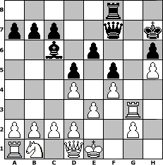 Partie-Notation im PGN-Format [Event "Herbstturnier 2022"] [Site "www.mySchach.de"] [Date "2022.09.26"] [Round "2"] [White "Rotstift10"] [Black "lotchi"] [ECO "D02"] [WhitemyELO "1638"] [BlackmyELO "1263"] [Result "1-0"] [TimeControl "10/1728000"] [WhiteDays "35"] [BlackDays "39"] [MySchachNr "127302"] 1. d4 d5 2. Nf3 f5 3. Bf4 e6 4. h4 Bd6 5. e3 Nf6 6. Ne5 Bxe5 7. Bxe5 Nc6 8. Bb5 Bd7 9. Bxc6 Bxc6 10. h5 h6 11. Rh3 O-O 12. Rg3 Qe7 13. Bxf6 Qf7 14. Bxg7 Kh7 15. Bxf8 Rxf8 16. f4 1-0 Stellungs-Notation im FEN-Format 5r2/ppp2q1k/2b1p2p/3p1p1P/3P1P2/4P1R1/PPPP2P1/RN1QK3 - Q - 0 16 Geschlagene Figuren Weiss: Geschlagene Figuren Schwarz: Klicken Sie auf eine geschlagene Figur um den gewünschten Zug darzustellen!