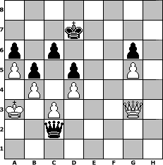 Partie-Notation im PGN-Format [Event "April 2018"] [Site "www.mySchach.de"] [Date "2018.04.11"] [Round "1"] [White "Andylein1989"] [Black "FrankB"] [ECO "C00"] [WhitemyELO "1704"] [BlackmyELO "1650"] [Result "1/2-1/2"] [TimeControl "10/1728000"] [WhiteDays "140"] [BlackDays "123"] [MySchachNr "111963"] 1. e4 e6 2. Nf3 d5 3. exd5 exd5 4. d4 Bd6 5. c3 Ne7 6. Bd3 Bf5 7. O-O f6 8. Re1 Qd7 9. Qc2 Bxd3 10. Qxd3 O-O 11. Nbd2 Qf5 12. Qb5 b6 13. Nf1 c6 14. Qb3 Nd7 15. Ng3 Qg6 16. Bd2 Qf7 17. Nh4 Bxg3 18. hxg3 Rfe8 19. Re2 Ng6 20. Rae1 Rxe2 21. Rxe2 Re8 22. Qd1 Re6 23. Nf5 Ne7 24. Rxe6 Qxe6 25. Nxe7+ Qxe7 26. Qg4 Nf8 27. Be3 Qe6 28. Qf4 Kf7 29. Qc7+ Qd7 30. Qf4 Ng6 31. Qf3 Qe6 32. Kf1 Qe4 33. Qd1 f5 34. a4 f4 35. gxf4 Nxf4 36. Bxf4 Qxf4 37. Qh5+ Kf6 38. Qd1 g6 39. g3 Qe4 40. f3 Qf5 41. Kg2 h5 42. g4 hxg4 43. fxg4 Qe4+ 44. Kg3 Ke6 45. Qf3 Qe1+ 46. Kf4 Kf6 47. g5+ Ke6 48. b4 a6 49. Qh3+ Kd6 50. Qe3 Qh4+ 51. Kf3 Qh3+ 52. Ke2 Qg2+ 53. Kd3 Qf1+ 54. Kc2 Qf5+ 55. Kc1 Qe4 56. Qf2 Qf5 57. Qg3+ Kd7 58. Kb2 Qe6 59. Qd3 b5 60. Ka3 Qf5 61. Qg3 Qc2 62. a5 1/2-1/2 Stellungs-Notation im FEN-Format 8/3k4/p1p3p1/Pp1p2P1/1P1P4/K1P3Q1/2q5/8 - - - 0 62 Geschlagene Figuren Weiss: ![]() ![]() ![]() ![]() ![]() ![]() ![]() ![]() ![]() ![]() ![]() ![]() ![]() ![]() ![]() Geschlagene Figuren Schwarz: ![]() ![]() ![]() ![]() ![]() ![]() ![]() ![]() ![]() ![]() ![]() ![]() ![]() ![]() ![]() Klicken Sie auf eine geschlagene Figur um den gewünschten Zug darzustellen!