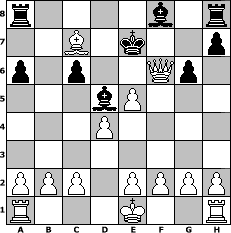 Partie-Notation im PGN-Format [Event "OhneEngine ins neue Jahr"] [Site "www.mySchach.de"] [Date "2009.12.16"] [Round "2"] [White "Haki"] [Black "Master1"] [ECO "C60"] [WhitemyELO "1389"] [BlackmyELO "1278"] [Result "1-0"] [TimeControl "10/2592000"] [WhiteDays "30"] [BlackDays "29"] [MySchachNr "61620"] 1. e4 e5 2. Nf3 Nc6 3. Bb5 d5 4. Nxe5 Qf6 5. d4 Nge7 6. Nc3 a6 7. Bxc6+ Nxc6 8. Nxd5 Qd6 9. Bf4 Be6 10. Nxf7 Qe7 11. Nxe7 Kxf7 12. Nxc6 bxc6 13. Bxc7 g6 14. Qf3+ Ke7 15. e5 Bd5 16. Qf6+ 1-0 Stellungs-Notation im FEN-Format r4b1r/2B1k2p/p1p2Qp1/3bP3/3P4/8/PPP1PPPP/R3K2R - KQ - 2 16 Geschlagene Figuren Weiss: Geschlagene Figuren Schwarz: Klicken Sie auf eine geschlagene Figur um den gewünschten Zug darzustellen!