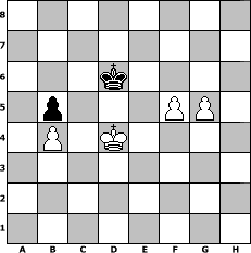 Partie-Notation im PGN-Format [Event "Die letzen Wintertage!"] [Site "www.mySchach.de"] [Date "2016.02.21"] [Round "1"] [White "Joschi"] [Black "borsti"] [ECO "C41"] [WhitemyELO "1513"] [BlackmyELO "1263"] [Result "1-0"] [TimeControl "10/2592000"] [WhiteDays "180"] [BlackDays "180"] [MySchachNr "102614"] 1. e4 e5 2. Nf3 d6 3. d4 Bg4 4. dxe5 dxe5 5. Be2 Nf6 6. Nxe5 Bxe2 7. Qxe2 Qd4 8. Nd3 Bc5 9. Nxc5 Qxc5 10. O-O O-O 11. Nc3 Re8 12. Kh1 Nc6 13. Be3 Qb4 14. Rab1 Nxe4 15. Nxe4 Rxe4 16. a3 Qe7 17. Qf3 Rd8 18. Rfd1 Re6 19. h3 h6 20. Rxd8+ Qxd8 21. Rd1 Rd6 22. Rxd6 Qxd6 23. Bf4 Qe7 24. Kh2 a5 25. Qb3 b6 26. Qc3 g5 27. Qxc6 gxf4 28. Qxh6 Qe5 29. Qh4 c5 30. c3 f6 31. g3 f3 32. Qg4+ Kf7 33. Qxf3 Qd6 34. Qe2 f5 35. Kg1 Kf6 36. f4 Qd7 37. Qe5+ Kg6 38. Kf2 Qd2+ 39. Qe2 Qd7 40. g4 Qd5 41. Qe8+ Kg7 42. Qe7+ Qf7 43. Qxf7+ Kxf7 44. Ke3 Kf6 45. b4 axb4 46. axb4 cxb4 47. cxb4 fxg4 48. hxg4 Ke6 49. Kd4 Kd6 50. f5 b5 51. g5 1-0 Stellungs-Notation im FEN-Format 8/8/3k4/1p3PP1/1P1K4/8/8/8 - - - 0 51 Geschlagene Figuren Weiss: Geschlagene Figuren Schwarz: Klicken Sie auf eine geschlagene Figur um den gewünschten Zug darzustellen!