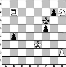 Partie-Notation im PGN-Format [Event "November 2022"] [Site "www.mySchach.de"] [Date "2022.11.18"] [Round "1"] [White "Leon"] [Black "lotchi"] [ECO "A10"] [WhitemyELO "1678"] [BlackmyELO "1229"] [Result "1-0"] [TimeControl "10/2592000"] [WhiteDays "210"] [BlackDays "209"] [MySchachNr "128121"] 1. c4 f5 2. d4 d5 3. c5 b6 4. b4 a5 5. Qa4+ Bd7 6. b5 bxc5 7. dxc5 e6 8. Ba3 Qf6 9. Qc2 Qxa1 10. e3 Qf6 11. c6 Bc8 12. Bb2 Bb4+ 13. Nd2 Qe7 14. Ngf3 Bxd2+ 15. Nxd2 Nf6 16. Qc1 h6 17. Ba3 Qf7 18. Nf3 Ne4 19. Ne5 Qf6 20. f4 Nd6 21. b6 cxb6 22. Bxd6 Qd8 23. Bxb8 O-O 24. c7 Qd6 25. Kf2 d4 26. Be2 Rxb8 27. cxb8=Q Qxb8 28. exd4 Qd6 29. Rd1 Bb7 30. d5 exd5 31. Qe3 Kh7 32. Qd4 Qc7 33. Bd3 Kg8 34. Re1 Qd6 35. Nf3 Bc8 36. Re5 Kh7 37. g4 Rf6 38. g5 Rf8 39. Rxd5 Qb4 40. Qxb4 axb4 41. Rd6 Bb7 42. Ne5 hxg5 43. fxg5 Be4 44. Be2 Rc8 45. g6+ Kg8 46. Bc4+ Kf8 47. Rxb6 Re8 48. Nd7+ Ke7 49. Be6 Rh8 50. Kg1 Rh6 51. Ne5 Kf6 52. Nc4 Rxg6+ 53. Kf2 Ke7 54. Bg8 Rg2+ 55. Ke3 Rxa2 56. Nd2 Ra8 57. Bh7 Rh8 58. Nxe4 Rxh7 59. Rb7+ Ke6 60. Ng5+ Kf6 61. Nxh7+ 1-0 Stellungs-Notation im FEN-Format 8/1R4pN/5k2/5p2/1p6/4K3/7P/8 - - - 0 61 Geschlagene Figuren Weiss: Geschlagene Figuren Schwarz: Klicken Sie auf eine geschlagene Figur um den gewünschten Zug darzustellen!