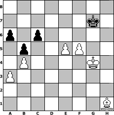 Partie-Notation im PGN-Format [Event "Der HSF feiert Geburtstag - feiert dabei gerne mit"] [Site "www.mySchach.de"] [Date "2012.05.01"] [Round "1"] [White "bavaria"] [Black "hape50"] [ECO "D00"] [WhitemyELO "1290"] [BlackmyELO "1265"] [Result "1-0"] [TimeControl "10/2592000"] [WhiteDays "30"] [BlackDays "29"] [MySchachNr "81457"] 1. d4 d5 2. e3 a6 3. Nf3 e6 4. a3 Nf6 5. Nc3 h6 6. Bd3 Be7 7. Ne5 O-O 8. Qf3 Nbd7 9. O-O Nxe5 10. dxe5 Nd7 11. Qg3 f5 12. Ne2 Bh4 13. Qg6 Nc5 14. Nf4 Bd7 15. Nh5 Qe7 16. g4 Bg5 17. f4 Bh4 18. Bd2 Qf7 19. gxf5 exf5 20. Qxf7+ Rxf7 21. Rf3 Be6 22. Be1 Be7 23. Bb4 Na4 24. Bxe7 Rxe7 25. Rb1 Nc5 26. Rg3 Rf8 27. b4 Na4 28. Kf2 Nc3 29. Rbg1 Kh8 30. Ke1 Rd8 31. Nxg7 Rg8 32. Nxe6 Rxg3 33. Rxg3 Rxe6 34. Bxf5 Rc6 35. e6 Nb5 36. e7 Nd6 37. Bd7 Rxc2 38. e8=Q+ Nxe8 39. Bxe8 Rxh2 40. Bf7 b5 41. Bxd5 h5 42. f5 h4 43. Rg1 Rh3 44. Rh1 Rxh1+ 45. Bxh1 Kg7 46. Kf2 Kf6 47. e4 Ke5 48. Kg1 c6 49. Kg2 Kf6 50. Kh3 Ke5 51. Kxh4 Kf6 52. Kg4 Kg7 53. e5 1-0 Stellungs-Notation im FEN-Format 8/6k1/p1p5/1p2PP2/1P4K1/P7/8/7B - - - 0 53 Geschlagene Figuren Weiss: Geschlagene Figuren Schwarz: Klicken Sie auf eine geschlagene Figur um den gewünschten Zug darzustellen!