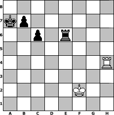 Partie-Notation im PGN-Format [Event "K"] [Site "www.mySchach.de"] [Date "2004.04.28"] [Round "1"] [White "MaxPayne"] [Black "tschulz"] [ECO "D07"] [WhitemyELO "1426"] [BlackmyELO "1565"] [Result "0-1"] [TimeControl "10/3456000"] [WhiteDays "221"] [BlackDays "196"] [MySchachNr "4193"] 1. d4 d5 2. c4 Nc6 3. Nf3 Bg4 4. cxd5 Bxf3 5. dxc6 Bxc6 6. Nc3 e6 7. e4 Bb4 8. Bd3 Qxd4 9. Be3 Bxc3+ 10. bxc3 Qxc3+ 11. Ke2 O-O-O 12. Rc1 Qa3 13. Qb3 Qa5 14. Rhd1 Qh5+ 15. f3 Qa5 16. Rc5 Qa4 17. Rc4 Qxb3 18. axb3 Kb8 19. Ra1 a6 20. Rd1 Ne7 21. Bd4 Rhg8 22. Ke3 g5 23. Bf6 Rd7 24. Rb4 Ng6 25. Bxg5 h5 26. Rc1 Ne5 27. Bxa6 Rxg5 28. f4 Ng4+ 29. Ke2 Ra5 30. Rxc6 Ra2+ 31. Ke1 Nf2 32. Rc1 c6 33. Ra4 Rdd2 34. Rxa2 Rxa2 35. Be2 Nxe4 36. Bf3 f5 37. Bxe4 fxe4 38. Kf1 e3 39. h3 Rf2+ 40. Kg1 Rxf4 41. Re1 Re4 42. g3 e2 43. Kf2 Rb4 44. Rxe2 Rxb3 45. Rxe6 h4 46. g4 Rxh3 47. g5 Rg3 48. g6 Ka7 49. Re4 Rxg6 50. Rxh4 Re6 0-1 Stellungs-Notation im FEN-Format 8/kp6/2p1r3/8/7R/8/5K2/8 - - - 1 51 Geschlagene Figuren Weiss: ![]() ![]() ![]() ![]() ![]() ![]() ![]() ![]() ![]() ![]() ![]() ![]() ![]() ![]() ![]() Geschlagene Figuren Schwarz: ![]() ![]() ![]() ![]() ![]() ![]() ![]() ![]() ![]() ![]() ![]() ![]() ![]() ![]() ![]() Klicken Sie auf eine geschlagene Figur um den gewünschten Zug darzustellen!