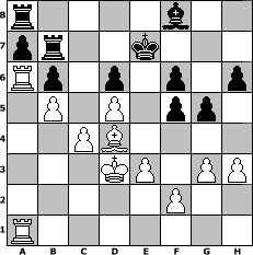 Partie-Notation im PGN-Format [Event "RDK-Turnier 2009"] [Site "www.mySchach.de"] [Date "2009.04.15"] [Round "1"] [White "Papale"] [Black "brucybabe"] [ECO "A38"] [WhitemyELO "1757"] [BlackmyELO "1597"] [Result "1-0"] [TimeControl "10/1728000"] [WhiteDays "87"] [BlackDays "54"] [MySchachNr "54835"] 1. c4 c5 2. Nc3 Nc6 3. g3 g6 4. Bg2 Bg7 5. Nf3 Nf6 6. O-O O-O 7. a3 d6 8. Rb1 Rb8 9. b4 cxb4 10. axb4 e6 11. b5 Ne7 12. Qc2 b6 13. Ba3 Re8 14. Qa4 Qc7 15. Rfc1 Nd7 16. d3 Nc5 17. Qc2 Bb7 18. d4 Nd7 19. Ne4 Bxe4 20. Qxe4 Nf6 21. Qd3 Rbc8 22. Nd2 Nd7 23. Ne4 Nf5 24. e3 Bf8 25. Ng5 Nb8 26. Be4 h6 27. Nh3 Qd7 28. Bxf5 exf5 29. Nf4 g5 30. Nd5 Qe6 31. h3 Kg7 32. Qe2 Nd7 33. Qf3 Nf6 34. Kg2 Qe4 35. Qxe4 Nxe4 36. Rb4 Nf6 37. Nxf6 Kxf6 38. d5 Kg6 39. Ra4 Rc7 40. Kf3 Rec8 41. Ke2 Kf6 42. Kd3 Ke7 43. Bb2 f6 44. Rca1 Ra8 45. Bd4 Rb7 46. Ra6 1-0 Stellungs-Notation im FEN-Format r4b2/pr2k3/Rp1p1p1p/1P1P1pp1/2PB4/3KP1PP/5P2/R7 - - - 5 46 Geschlagene Figuren Weiss: ![]() ![]() ![]() ![]() ![]() ![]() ![]() ![]() ![]() ![]() ![]() ![]() ![]() ![]() ![]() Geschlagene Figuren Schwarz: ![]() ![]() ![]() ![]() ![]() ![]() ![]() ![]() ![]() ![]() ![]() ![]() ![]() ![]() ![]() Klicken Sie auf eine geschlagene Figur um den gewünschten Zug darzustellen!