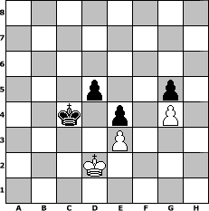 Partie-Notation im PGN-Format [Event "Es weihnachtet sehr"] [Site "www.mySchach.de"] [Date "2021.12.20"] [Round "1"] [White "alpacino"] [Black "lotchi"] [ECO "D02"] [WhitemyELO "1273"] [BlackmyELO "1223"] [Result "0-1"] [TimeControl "10/864000"] [WhiteDays "06"] [BlackDays "10"] [MySchachNr "123952"] 1. d4 d5 2. Nf3 Bg4 3. Ne5 h5 4. Nxg4 hxg4 5. g3 e6 6. e3 f5 7. Bg2 g6 8. O-O c5 9. c3 c4 10. Qa4+ Nc6 11. Nd2 Qa5 12. Qxa5 Nxa5 13. f3 gxf3 14. Nxf3 Nf6 15. Ne5 Rg8 16. Bd2 Bd6 17. Nf3 b6 18. Rfe1 b5 19. Ng5 Ne4 20. Bxe4 fxe4 21. Nxe6 Ke7 22. Ng5 Rg7 23. Rf1 Rf8 24. Rxf8 Kxf8 25. Ne6+ Kf7 26. Nd8+ Ke7 27. b4 Kxd8 28. Rf1 Nc6 29. a3 Ke7 30. Rf2 a5 31. Kg2 axb4 32. axb4 Rf7 33. h3 Rxf2+ 34. Kxf2 Kf6 35. h4 Ne7 36. Kg2 Nf5 37. g4 Nxh4+ 38. Kh3 Nf3 39. Bc1 g5 40. Kg2 Nh4+ 41. Kh3 Ng6 42. Bd2 Ne7 43. Be1 Nc8 44. Bf2 Nb6 45. Be1 Na4 46. Bd2 Kg6 47. Be1 Nb2 48. Bd2 Nd1 49. Kg2 Bxb4 50. cxb4 c3 51. Bc1 c2 52. Kf1 Nc3 53. Ke1 Na2 54. Bd2 c1=Q+ 55. Bxc1 Nxc1 56. Kd2 Nd3 57. Ke2 Nxb4 58. Kd2 Na6 59. Kc3 Kf6 60. Kb3 Nc7 61. Kb4 Ne6 62. Kxb5 Nxd4+ 63. Kc5 Ke6 64. Kxd4 Kd6 65. Kc3 Kc5 66. Kd2 Kc4 0-1 Stellungs-Notation im FEN-Format 8/8/8/3p2p1/2k1p1P1/4P3/3K4/8 - - - 5 67 Geschlagene Figuren Weiss: Geschlagene Figuren Schwarz: Klicken Sie auf eine geschlagene Figur um den gewünschten Zug darzustellen!