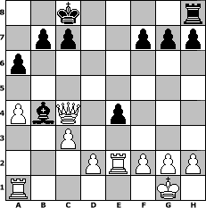 Partie-Notation im PGN-Format [Event "CN OPEN 2011"] [Site "www.mySchach.de"] [Date "2011.11.29"] [Round "1"] [White "Knight"] [Black "ClaudiaN"] [ECO "A45"] [WhitemyELO "1257"] [BlackmyELO "1726"] [Result "1-0"] [TimeControl "10/2592000"] [WhiteDays "30"] [BlackDays "30"] [MySchachNr "77826"] 1. d4 Nf6 2. Nc3 d5 3. e4 Nxe4 4. Nxe4 dxe4 5. Be3 Nc6 6. Bb5 Qd6 7. Ne2 Bg4 8. O-O O-O-O 9. a4 e5 10. c3 a6 11. Bxc6 Qxc6 12. b4 Qc4 13. Re1 exd4 14. Bxd4 Rxd4 15. Qxd4 Bxe2 16. Qxc4 Bxb4 17. Rxe2 1-0 Stellungs-Notation im FEN-Format 2k4r/1pp2ppp/p7/8/PbQ1p3/2P5/3PRPPP/R5K1 - - - 0 17 Geschlagene Figuren Weiss: Geschlagene Figuren Schwarz: Klicken Sie auf eine geschlagene Figur um den gewünschten Zug darzustellen!