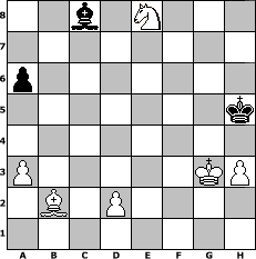 Partie-Notation im PGN-Format [Event "Wrixum Open die II."] [Site "www.mySchach.de"] [Date "2005.06.22"] [Round "1"] [White "Seneca"] [Black "Hobbykegler"] [ECO "D20"] [WhitemyELO "1723"] [BlackmyELO "988"] [Result "0-1"] [TimeControl "10/1728000"] [WhiteDays "72"] [BlackDays "59"] [MySchachNr "14426"] 1. d4 d5 2. c4 dxc4 3. Nc3 e6 4. e4 Nf6 5. Bxc4 Be7 6. Nf3 O-O 7. O-O Nc6 8. a3 Ng4 9. d5 exd5 10. exd5 Na5 11. Be2 Bc5 12. b4 Bxf2+ 13. Rxf2 Nxf2 14. Kxf2 Re8 15. bxa5 b6 16. axb6 cxb6 17. Bb2 b5 18. Nxb5 a6 19. Nbd4 Qxd5 20. Kg1 Qe4 21. Qf1 Qe3+ 22. Qf2 Qf4 23. Bc4 Ra7 24. Re1 Re4 25. Rxe4 Qxe4 26. Qe1 Qxe1+ 27. Nxe1 Rd7 28. Nef3 Bb7 29. Ne5 Re7 30. Nxf7 Rxf7 31. Bxf7+ Kxf7 32. g3 Kg6 33. Ne6 h5 34. Nxg7 Kg5 35. Kf2 h4 36. h3 hxg3+ 37. Kxg3 Bc8 38. Ne8 Kh5 0-1 Stellungs-Notation im FEN-Format 2b1N3/8/p7/7k/8/P5KP/1B1P4/8 - - - 3 39 Geschlagene Figuren Weiss: Geschlagene Figuren Schwarz: Klicken Sie auf eine geschlagene Figur um den gewünschten Zug darzustellen!