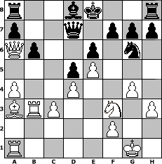 Partie-Notation im PGN-Format [Event "Mannschaftswettkampf 2014"] [Site "www.mySchach.de"] [Date "2014.09.04"] [Round "1"] [Board "3"] [White "Helangel"] [Black "nyffhans"] [ECO "C02"] [WhitemyELO "1905"] [BlackmyELO "1998"] [Result "1/2-1/2"] [TimeControl "10/2592000"] [WhiteDays "14"] [BlackDays "27"] [MySchachNr "95666"] 1. e4 e6 2. d4 d5 3. e5 c5 4. c3 Nc6 5. Nf3 Qb6 6. a3 c4 7. Nbd2 Na5 8. Be2 Bd7 9. Rb1 Be7 10. O-O Nh6 11. b3 cxb3 12. Nxb3 Nf5 13. Bd3 Ba4 14. Bc2 Nxb3 15. Bxb3 Bxb3 16. Rxb3 Qc6 17. g4 Nh6 18. h3 Ng8 19. Qd3 b6 20. Qa6 Bd8 21. a4 Ne7 22. Ba3 Ng6 23. Ra1 Qc8 24. Qb5+ Qd7 25. Qa6 1/2-1/2 Stellungs-Notation im FEN-Format r2bk2r/p2q1ppp/Qp2p1n1/3pP3/P2P2P1/BRP2N1P/5P2/R5K1 - kq - 8 25 Geschlagene Figuren Weiss: Geschlagene Figuren Schwarz: Klicken Sie auf eine geschlagene Figur um den gewünschten Zug darzustellen!