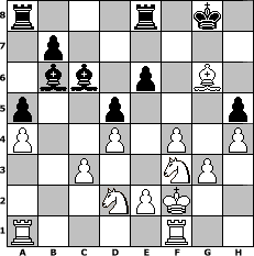 Partie-Notation im PGN-Format [Event "^^Lust, Laune und Spannung am Schach!!!^^"] [Site "www.mySchach.de"] [Date "2007.09.24"] [Round "1"] [White "ujack1961"] [Black "Knight"] [ECO "C00"] [WhitemyELO "1770"] [BlackmyELO "1290"] [Result "1-0"] [TimeControl "10/864000"] [WhiteDays "30"] [BlackDays "29"] [MySchachNr "38435"] 1. e4 e6 2. e5 d5 3. d4 Nc6 4. f4 Bb4+ 5. c3 Ba5 6. b4 Bb6 7. a4 a5 8. b5 Na7 9. Ba3 Ne7 10. Nf3 O-O 11. Bd3 Nf5 12. Bxf5 Re8 13. Bc2 g6 14. O-O Bd7 15. Qd3 c6 16. bxc6 Bxc6 17. Nbd2 Nc8 18. h4 h5 19. Kf2 Ne7 20. Bxe7 Qxe7 21. g3 f5 22. exf6 Qxf6 23. Qxg6+ Qxg6 24. Bxg6 1-0 Stellungs-Notation im FEN-Format r3r1k1/1p6/1bb1p1B1/p2p3p/P2P1P1P/2P2NP1/3NPK2/R4R2 - - - 0 24 Geschlagene Figuren Weiss: Geschlagene Figuren Schwarz: Klicken Sie auf eine geschlagene Figur um den gewünschten Zug darzustellen!