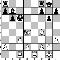 Partie-Notation im PGN-Format [Event "Schach f"] [Site "www.mySchach.de"] [Date "2008.08.25"] [Round "1"] [White "bruno"] [Black "rakl"] [ECO "D80"] [WhitemyELO "1713"] [BlackmyELO "1754"] [Result "1/2-1/2"] [TimeControl "10/2592000"] [WhiteDays "30"] [BlackDays "24"] [MySchachNr "47400"] 1. d4 Nf6 2. c4 g6 3. Nc3 d5 4. e3 Bg7 5. Nf3 O-O 6. h3 b6 7. cxd5 Nxd5 8. Bc4 Bb7 9. O-O e6 10. e4 Nxc3 11. bxc3 Bxe4 12. Re1 Bb7 13. Bf4 c5 14. Rc1 cxd4 15. Nxd4 Nd7 16. Bxe6 Bxd4 17. Bxd7 Qxd7 18. Qxd4 Qc6 1/2-1/2 Stellungs-Notation im FEN-Format r4rk1/pb3p1p/1pq3p1/8/3Q1B2/2P4P/P2P1PP1/2R1R1K1 - - - 1 19 Geschlagene Figuren Weiss: Geschlagene Figuren Schwarz: Klicken Sie auf eine geschlagene Figur um den gewünschten Zug darzustellen!