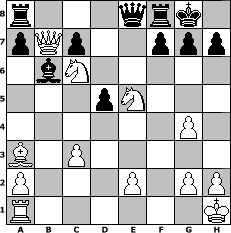 14. f3 d5 15. N4e5 Bc5+ 16. Kh1 Nf2+ 17. Rxf2 Bxf2 18. fxg4 Bb6 19. Ba3 1-0