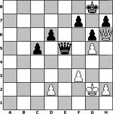 Partie-Notation im PGN-Format [Event "Dabei ist alles I."] [Site "www.mySchach.de"] [Date "2007.11.27"] [Round "1"] [White "bruno"] [Black "Seneca"] [ECO "A42"] [WhitemyELO "1464"] [BlackmyELO "1496"] [Result "0-1"] [TimeControl "10/864000"] [WhiteDays "10"] [BlackDays "10"] [MySchachNr "40179"] 1. d4 d6 2. c4 Nf6 3. Nc3 g6 4. Nf3 Bg7 5. e4 Bg4 6. Be2 Nbd7 7. O-O Bxf3 8. Bxf3 c6 9. b4 a6 10. Re1 O-O 11. Be3 Rb8 12. a4 Qc7 13. g4 b5 14. axb5 axb5 15. Qb3 bxc4 16. Qxc4 e6 17. Bf4 e5 18. Be3 Nb6 19. Qb3 exd4 20. Bxd4 Rfe8 21. Bxf6 Bxf6 22. Rad1 Nd7 23. Qc4 Ne5 24. Qe2 Rxb4 25. Qe3 Nxf3+ 26. Qxf3 Bxc3 27. Qxc3 Rbxe4 28. Rxe4 Rxe4 29. Qg3 Re6 30. Qf4 Kg7 31. g5 Qe7 32. Qh4 Re1+ 33. Rxe1 Qxe1+ 34. Kg2 Qe5 35. Qh6+ Kg8 36. f3 c5 0-1 Stellungs-Notation im FEN-Format 6k1/5p1p/3p2pQ/2p1q1P1/8/5P2/3P2KP/8 - - - 0 37 Geschlagene Figuren Weiss: Geschlagene Figuren Schwarz: Klicken Sie auf eine geschlagene Figur um den gewünschten Zug darzustellen!