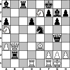 Partie-Notation im PGN-Format [Event "Der sizillianische Drachen"] [Site "www.mySchach.de"] [Date "2004.06.23"] [Round "2"] [White "MaxPayne"] [Black "myfairlady"] [ECO "B70"] [WhitemyELO "1493"] [BlackmyELO "1780"] [Result "0-1"] [TimeControl "10/3456000"] [WhiteDays "094"] [BlackDays "112"] [MySchachNr "5364"] 1. e4 c5 2. Nf3 d6 3. d4 cxd4 4. Nxd4 Nf6 5. Nc3 g6 6. Be2 Bg7 7. O-O O-O 8. Bg5 a6 9. a3 Nbd7 10. Qd2 Qb6 11. Nb3 Qa7 12. Be3 b6 13. Rad1 Bb7 14. Bf3 Ne5 15. Na5 Rac8 16. Na4 Nxe4 17. Bxe4 Bxe4 18. Nxb6 Rxc2 19. Qb4 Ba8 20. Nd5 Qd7 21. Nc3 Rc8 22. Qb3 Qg4 23. Nd5 Rxb2 24. Nxe7+ Kf8 0-1 Stellungs-Notation im FEN-Format b1r2k2/4Npbp/p2p2p1/N3n3/6q1/PQ2B3/1r3PPP/3R1RK1 - - - 1 25 Geschlagene Figuren Weiss: Geschlagene Figuren Schwarz: Klicken Sie auf eine geschlagene Figur um den gewünschten Zug darzustellen!