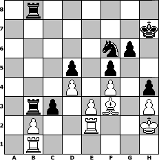 Partie-Notation im PGN-Format [Event "Oktober Gold"] [Site "www.mySchach.de"] [Date "2025.10.11"] [Round "1"] [White "deepsabel"] [Black "Leon"] [ECO "D59"] [WhitemyELO "1799"] [BlackmyELO "2089"] [Result "0-1"] [TimeControl "10/1728000"] [WhiteDays "95"] [BlackDays "93"] [MySchachNr "133718"] 1. d4 d5 2. c4 e6 3. Nc3 Nf6 4. Bg5 Be7 5. e3 O-O 6. Nf3 h6 7. Bh4 b6 8. cxd5 Nxd5 9. Bxe7 Qxe7 10. Nxd5 exd5 11. Bd3 c5 12. Rc1 c4 13. Bb1 Bg4 14. O-O Nc6 15. h3 Bh5 16. Qa4 Bxf3 17. gxf3 Qb7 18. f4 f5 19. Qd1 b5 20. Qh5 Ne7 21. Kh2 a5 22. Rg1 Qc6 23. Rg3 Kh7 24. Rcg1 g6 25. Qf3 Qf6 26. Bc2 a4 27. a3 Rfb8 28. Qd1 b4 29. axb4 Rxb4 30. Qa1 Rb7 31. Qa3 Qb6 32. Rb1 Qa5 33. Rgg1 Qd2 34. Qc3 Qxf2+ 35. Rg2 Qh4 36. Ra1 Rab8 37. Bxa4 Ng8 38. Bd1 Nf6 39. Bf3 h5 40. Re2 Rb3 41. Qe1 Qxe1 42. Raxe1 h4 43. Rb1 c3 0-1 Stellungs-Notation im FEN-Format 1r6/7k/5np1/3p1p2/3P1P1p/1rp1PB1P/1P2R2K/1R6 - - - 0 44 Geschlagene Figuren Weiss: Geschlagene Figuren Schwarz: Klicken Sie auf eine geschlagene Figur um den gewünschten Zug darzustellen!