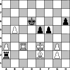Partie-Notation im PGN-Format [Event "Neujahrsturnier 2014"] [Site "www.mySchach.de"] [Date "2014.01.01"] [Round "1"] [White "itaca2 (adv.)"] [Black "Lemmi11"] [ECO "C65"] [WhitemyELO "1522"] [BlackmyELO "1836"] [Result "1-0"] [TimeControl "10/3456000"] [WhiteDays "188"] [BlackDays "130"] [MySchachNr "91928"] 1. e4 e5 2. Nf3 Nc6 3. Bb5 Nf6 4. O-O Bc5 5. Nxe5 Nxe5 6. d4 a6 7. Be2 Bxd4 8. Qxd4 Nc6 9. Qd3 O-O 10. Nc3 Re8 11. Bg5 h6 12. Bxf6 Qxf6 13. Nd5 Qd8 14. f4 Ne7 15. Ne3 Nc6 16. Rad1 d6 17. a3 Bd7 18. e5 Qb8 19. Rf2 Qa7 20. Nd5 b5 21. Qg3 Kh8 22. Bh5 dxe5 23. Nf6 gxf6 24. Qh4 Kg7 25. Rxd7 Re7 26. Rxe7 Nxe7 27. fxe5 Nd5 28. Bf3 Qe3 29. Qg3+ Kf8 30. Bxd5 Qxg3 31. hxg3 Rd8 32. c4 c6 33. Bxc6 fxe5 34. cxb5 axb5 35. Bxb5 Ke7 36. Rc2 Rd1+ 37. Kf2 f5 38. b4 Ra1 39. Rc3 Ra2+ 40. Be2 Ke6 41. b5 Kd6 42. Ke3 1-0 Stellungs-Notation im FEN-Format 8/8/3k3p/1P2pp2/8/P1R1K1P1/r3B1P1/8 - - - 2 42 Geschlagene Figuren Weiss: Geschlagene Figuren Schwarz: Klicken Sie auf eine geschlagene Figur um den gewünschten Zug darzustellen!