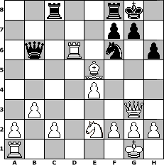 Partie-Notation im PGN-Format [Event "Herbstturnier 2025"] [Site "www.mySchach.de"] [Date "2025.09.16"] [Round "1"] [White "Oste152V4"] [Black "Jonas84"] [ECO "A13"] [WhitemyELO "1753"] [BlackmyELO "1531"] [Result "1-0"] [TimeControl "10/1728000"] [WhiteDays "42"] [BlackDays "58"] [MySchachNr "133684"] 1. c4 e6 2. Nc3 c5 3. e4 Nc6 4. Nf3 d6 5. d4 cxd4 6. Nxd4 e5 7. Nf3 h6 8. b3 Nf6 9. Bb2 Bg4 10. Be2 Be7 11. Qd2 O-O 12. O-O a6 13. Rfd1 Rc8 14. Qe3 Nd4 15. Nxd4 Bxe2 16. Ndxe2 b5 17. cxb5 axb5 18. Nxb5 Ng4 19. Qg3 Nf6 20. Bxe5 Qb6 21. Nxd6 Bxd6 22. Rxd6 1-0 Stellungs-Notation im FEN-Format 2r2rk1/5pp1/1q1R1n1p/4B3/4P3/1P4Q1/P1P1NPPP/R5K1 - - - 0 22 Geschlagene Figuren Weiss: Geschlagene Figuren Schwarz: Klicken Sie auf eine geschlagene Figur um den gewünschten Zug darzustellen!
