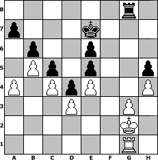 Partie-Notation im PGN-Format [Event "BOMBASTIC BRAIN BUSTER"] [Site "www.mySchach.de"] [Date "2019.11.02"] [Round "2"] [White "vim"] [Black "lotchi"] [ECO "C55"] [WhitemyELO "1533"] [BlackmyELO "1522"] [Result "1/2-1/2"] [TimeControl "10/3456000"] [WhiteDays "40"] [BlackDays "40"] [MySchachNr "116173"] 1. e4 e5 2. Nf3 Nc6 3. Bc4 Nf6 4. d3 d6 5. c3 Bg4 6. h3 Be6 7. Bg5 h6 8. Bxf6 gxf6 9. Bxe6 fxe6 10. Nh4 h5 11. Nd2 f5 12. Ndf3 f4 13. Qe2 Be7 14. g3 fxg3 15. fxg3 Bxh4 16. Nxh4 Qg5 17. Rg1 O-O-O 18. Nf3 Qh6 19. h4 Rdf8 20. Ng5 d5 21. O-O-O d4 22. c4 b6 23. Rdf1 Rxf1+ 24. Rxf1 Kb7 25. a3 Nd8 26. Qf3 Kc6 27. Qf6 Qxf6 28. Rxf6 Kd7 29. b4 c5 30. b5 Ke7 31. Rf3 Rg8 32. Kd2 Rg7 33. Ke2 Nb7 34. Rf1 Nd6 35. Kf2 Nf7 36. Nxf7 Rxf7+ 37. Kg2 Rg7 38. Kh3 Rg4 39. a4 Rg8 40. Rg1 Rf8 41. Kg2 Rg8 1/2-1/2 Stellungs-Notation im FEN-Format 6r1/p3k3/1p2p3/1Pp1p2p/P1PpP2P/3P2P1/6K1/6R1 - - - 5 42 Geschlagene Figuren Weiss: Geschlagene Figuren Schwarz: Klicken Sie auf eine geschlagene Figur um den gewünschten Zug darzustellen!