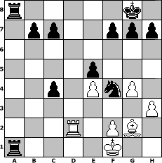 Partie eroeffnet am 27.05.2005, 00:00 Uhr und beendet am 12.06.2005, 14:08 Uhr Spieler weiss: MichaelKnopf Spieler schwarz: Andreschach[adv.] Andreschach hat die Partie gewonnen! | |