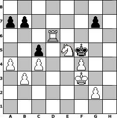 Partie-Notation im PGN-Format [Event "unter uns Nr. 58"] [Site "www.mySchach.de"] [Date "2025.10.15"] [Round "1"] [White "faustballer"] [Black "Haneken"] [ECO "A01"] [WhitemyELO "1445"] [BlackmyELO "1121"] [Result "1-0"] [TimeControl "10/864000"] [WhiteDays "40"] [BlackDays "32"] [MySchachNr "133769"] 1. b3 d5 2. Bb2 f6 3. e3 Na6 4. Nc3 Bf5 5. d3 Qd6 6. h3 O-O-O 7. Be2 Nc5 8. Bf3 c6 9. a4 Ne6 10. Bg4 Nh6 11. e4 Bxg4 12. hxg4 Qe5 13. Rb1 d4 14. Nce2 Nxg4 15. Ng3 h5 16. Bc1 Nf4 17. Bxf4 Qxf4 18. Qe2 e5 19. Rxh5 Rxh5 20. Nxh5 Qh2 21. Qxg4+ Kc7 22. Kf1 Rd7 23. Ke2 Qh1 24. Rf1 f5 25. exf5 e4 26. dxe4 Re7 27. Nf3 Rxe4+ 28. Qxe4 Qxh5 29. Qxd4 Qxf5 30. Qe5+ Qxe5+ 31. Nxe5 c5 32. f4 Kd6 33. Rd1+ Ke6 34. c4 Kf5 35. Kf3 Bd6 36. Rxd6 1-0 Stellungs-Notation im FEN-Format 8/pp4p1/3R4/2p1Nk2/P1P2P2/1P3K2/6P1/8 - - - 0 36 Geschlagene Figuren Weiss: Geschlagene Figuren Schwarz: Klicken Sie auf eine geschlagene Figur um den gewünschten Zug darzustellen!