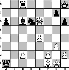 Partie-Notation im PGN-Format [Event "Die Wikinger XVI"] [Site "www.mySchach.de"] [Date "2020.04.23"] [Round "1"] [White "Oste152V4"] [Black "larlinde"] [ECO "B23"] [WhitemyELO "1759"] [BlackmyELO "2150"] [Result "0-1"] [TimeControl "10/2592000"] [WhiteDays "01"] [BlackDays "23"] [MySchachNr "118113"] 1. e4 c5 2. Nc3 a6 3. g3 Nc6 4. Nge2 e6 5. Bg2 d6 6. O-O Be7 7. d4 cxd4 8. Nxd4 Bd7 9. Be3 Nf6 10. a4 O-O 11. Nxc6 Bxc6 12. Qe2 Qc7 13. a5 Nd7 14. Rfd1 Rfc8 15. Bd4 h6 16. Rd2 Bf6 17. Bxf6 Nxf6 18. Qc4 b5 19. axb6 Qxb6 20. Rxd6 Ne8 21. Rxe6 fxe6 22. Qxe6+ Kh8 23. Nd5 Qxb2 24. Ne7 Qxa1+ 25. Bf1 Nd6 26. Nxc8 Rxc8 0-1 Stellungs-Notation im FEN-Format 2r4k/6p1/p1bnQ2p/8/4P3/6P1/2P2P1P/q4BK1 - - - 0 27 Geschlagene Figuren Weiss: Geschlagene Figuren Schwarz: Klicken Sie auf eine geschlagene Figur um den gewünschten Zug darzustellen!