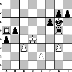 Partie-Notation im PGN-Format [Event "Neujahrsturnier 2014"] [Site "www.mySchach.de"] [Date "2014.01.01"] [Round "1"] [White "Leeloo"] [Black "Wernburger"] [ECO "B20"] [WhitemyELO "1707"] [BlackmyELO "1802"] [Result "0-1"] [TimeControl "10/3456000"] [WhiteDays "120"] [BlackDays "149"] [MySchachNr "91931"] 1. e4 c5 2. Bc4 Nc6 3. Nf3 Nf6 4. d3 e6 5. c3 d5 6. Bb3 dxe4 7. dxe4 Qxd1+ 8. Kxd1 Nxe4 9. Be3 Be7 10. Nbd2 Nxd2 11. Kxd2 b6 12. Rad1 Ba6 13. Kc2 c4 14. Nd4 cxb3+ 15. axb3 Nxd4+ 16. Bxd4 f6 17. f4 Kf7 18. Rhe1 Rhd8 19. Re3 Rac8 20. c4 Bb4 21. Rdd3 Bxc4 22. bxc4 Rxc4+ 23. Bc3 Rxd3 24. Rxd3 Bxc3 25. bxc3 Ke7 26. Rg3 Kf7 27. Rd3 a5 28. Rd7+ Kg6 29. g3 b5 30. Kd3 Rc5 31. Ra7 a4 32. Ra6 Rd5+ 33. Ke3 e5 34. Ra5 exf4+ 35. Ke4 fxg3 36. hxg3 Rc5 37. Kd4 Rg5 0-1 Stellungs-Notation im FEN-Format 8/6pp/5pk1/Rp4r1/p2K4/2P3P1/4P3/8 - - - 3 38 Geschlagene Figuren Weiss: Geschlagene Figuren Schwarz: Klicken Sie auf eine geschlagene Figur um den gewünschten Zug darzustellen!