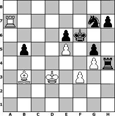 Partie-Notation im PGN-Format [Event "3.FC 960-Clubmeisterschaft 2014"] [Site "www.mySchach.de"] [Date "2014.01.10"] [Round "1"] [White "Peterlie77 (C)"] [Black "Schachfedi"] [Variant "Fischerrandom"] [SetUp "1"] [FEN "qbbnnrkr/pppppppp/8/8/8/8/PPPPPPPP/QBBNNRKR w KQkq - 0 1"] [WhitemyELO "2040"] [BlackmyELO "1816"] [Result "1-0"] [TimeControl "10/2592000"] [WhiteDays "26"] [BlackDays "27"] [MySchachNr "92263"] 1. d4 d5 2. b3 Nf6 3. Ne3 c6 4. Nd3 Re8 5. c4 O-O 6. cxd5 cxd5 7. Ba3 Nc6 8. Rc1 a5 9. O-O a4 10. bxa4 Qxa4 11. Bc5 Ba7 12. Bc2 Qa5 13. a4 Bxc5 14. Nxc5 e5 15. Nb3 Qc7 16. a5 exd4 17. Nxd4 Qxa5 18. Qxa5 Nxa5 19. Ba4 Re4 20. Rfd1 Be6 21. Rc5 b6 22. Rc7 Nc4 23. Nxc4 dxc4 24. f3 Re3 25. Rc1 Rd8 26. Nxe6 fxe6 27. Kf2 Re5 28. R7xc4 Rd2 29. Rc8+ Kf7 30. R1c7+ Kg6 31. Bc2+ Kh6 32. Bd3 Nd5 33. Rc2 Rxc2 34. Bxc2 g6 35. g3 Kg7 36. Bb3 Kf7 37. Rc6 b5 38. e4 Ne7 39. Ra6 Kf6 40. Ke3 Nf5+ 41. Kd3 Ng7 42. Ra7 Rh5 43. h4 g5 44. g4 Rxh4 45. e5+ 1-0 Stellungs-Notation im FEN-Format 8/R5np/4pk2/1p2P1p1/6Pr/1B1K1P2/8/8 - - - 0 45 Geschlagene Figuren Weiss: Geschlagene Figuren Schwarz: Klicken Sie auf eine geschlagene Figur um den gewünschten Zug darzustellen!