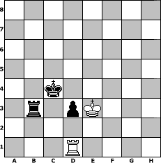 Partie-Notation im PGN-Format [Event "Auf dem Weg zu 1600 ELO"] [Site "www.mySchach.de"] [Date "2008.02.19"] [Round "1"] [White "Helmut48"] [Black "Andylein1989"] [ECO "C20"] [WhitemyELO "1367"] [BlackmyELO "1460"] [Result "1/2-1/2"] [TimeControl "10/864000"] [WhiteDays "60"] [BlackDays "60"] [MySchachNr "42694"] 1. e4 e5 2. Qf3 Nf6 3. Bc4 c6 4. d3 h6 5. a3 d5 6. exd5 cxd5 7. Bb5+ Nc6 8. h3 Bd7 9. c3 a6 10. Bxc6 bxc6 11. Qd1 Bd6 12. f3 O-O 13. Ne2 Nh5 14. O-O Qh4 15. Qe1 Qxe1 16. Rxe1 Nf6 17. b4 a5 18. bxa5 Rxa5 19. Bd2 Rfa8 20. Bc1 Bf5 21. Rd1 c5 22. c4 d4 23. Ng3 Bg6 24. Ne4 Nxe4 25. fxe4 f5 26. exf5 Bxf5 27. g4 Bg6 28. Ra2 h5 29. Rg2 hxg4 30. hxg4 e4 31. dxe4 Bxe4 32. Rb2 Bf3 33. Rd3 Bxg4 34. Rg2 Bf5 35. Rb3 Be6 36. Nd2 Ra4 37. Rg6 Kf7 38. Rg2 Bxc4 39. Nxc4 Rxc4 40. Rb7+ Ke8 41. Bb2 Be5 42. Re2 Kd8 43. Rxe5 Rc2 44. Rd5+ Kc8 45. Rdd7 Rb8 46. Rdc7+ Kd8 47. Rd7+ Ke8 48. Rxg7 Rxb7 49. Rxb7 d3 50. Rb8+ Kd7 51. Kf1 c4 52. Bd4 c3 53. Bxc3 Rxc3 54. Rb1 Rxa3 55. Rd1 Kd6 56. Kf2 Kd5 57. Ke3 Kc4 58. Rd2 Rc3 59. Rd1 Rb3 1/2-1/2 Stellungs-Notation im FEN-Format 8/8/8/8/2k5/1r1pK3/8/3R4 - - - 10 60 Geschlagene Figuren Weiss: Geschlagene Figuren Schwarz: Klicken Sie auf eine geschlagene Figur um den gewünschten Zug darzustellen!