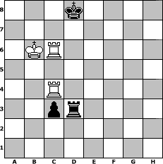 Partie-Notation im PGN-Format [Event "Schach in den Mai"] [Site "www.mySchach.de"] [Date "2008.04.26"] [Round "1"] [White "Hobbykegler"] [Black "Master1"] [ECO "C46"] [WhitemyELO "1145"] [BlackmyELO "1304"] [Result "1-0"] [TimeControl "10/864000"] [WhiteDays "59"] [BlackDays "41"] [MySchachNr "44524"] 1. e4 e5 2. Nf3 Nc6 3. Nc3 Bb4 4. a3 Bxc3 5. dxc3 Nf6 6. Bc4 Nxe4 7. O-O h6 8. Qe2 f5 9. Be3 f4 10. Nxe5 Nxe5 11. Qh5+ g6 12. Qxe5+ Qe7 13. Qxh8+ Qf8 14. Qe5+ Qe7 15. Qxf4 g5 16. Qf5 d6 17. Qg6+ Kd8 18. Qxh6 a6 19. Rae1 Bf5 20. Qh8+ Qe8 21. Bxg5+ Kd7 22. Qg7+ Kc6 23. b4 Qg6 24. Qe7 Qxg5 25. Qf7 Bd7 26. f4 Qf5 27. Qxf5 Bxf5 28. a4 Nxc3 29. Re3 Nxa4 30. Rd1 Nb2 31. Bd5+ Kb6 32. Rd4 Bxc2 33. Re2 Nd1 34. Rxc2 Ne3 35. Re2 Nf5 36. Rc4 c6 37. Be4 Ne7 38. Bh7 Nd5 39. Kf1 Rh8 40. Bd3 Nxf4 41. Rd2 Nxd3 42. Rxd3 d5 43. Rf4 Rxh2 44. Rf6 Rh1+ 45. Kf2 Rh5 46. Ra3 d4 47. Ke2 Rb5 48. Kd3 Rxb4 49. g4 Kc7 50. g5 Rb5 51. Kxd4 Rxg5 52. Rf7+ Kd6 53. Rxb7 c5+ 54. Kc4 Rg4+ 55. Kb3 Rg3+ 56. Ka4 Rg4+ 57. Ka5 c4 58. Kxa6 Rd4 59. Rb6+ Ke5 60. Ra5+ Rd5 61. Ra4 c3 62. Rc6 Rd3 63. Rc5+ Ke6 64. Re4+ Kd6 65. Kb6 Kd7 66. Rc6 Kd8 67. Rec4 1-0 Stellungs-Notation im FEN-Format 3k4/8/1KR5/8/2R5/2pr4/8/8 - - - 11 67 Geschlagene Figuren Weiss: Geschlagene Figuren Schwarz: Klicken Sie auf eine geschlagene Figur um den gewünschten Zug darzustellen!