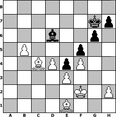 Partie-Notation im PGN-Format [Event "Air"] [Site "www.mySchach.de"] [Date "2023.10.04"] [Round "1"] [White "beowulf"] [Black "skuehnel"] [ECO "A03"] [WhitemyELO "1401"] [BlackmyELO "1266"] [Result "1-0"] [TimeControl "10/864000"] [WhiteDays "10"] [BlackDays "05"] [MySchachNr "130789"] 1. f4 d5 2. Nf3 Nf6 3. e3 Bf5 4. Bb5+ c6 5. Be2 e6 6. O-O Bd6 7. d4 O-O 8. c4 Ne4 9. Nbd2 Nd7 10. Nxe4 Bxe4 11. c5 Bc7 12. b4 b5 13. cxb6 axb6 14. a3 c5 15. Bb2 cxb4 16. axb4 Rxa1 17. Qxa1 Qa8 18. Nd2 Qxa1 19. Rxa1 Bd6 20. Bc3 Rc8 21. Nxe4 dxe4 22. Be1 f5 23. Kf2 Nf6 24. Ra6 Nd5 25. g4 Rb8 26. gxf5 exf5 27. Bc4 Kh8 28. Bxd5 g6 29. Ra8 Rxa8 30. Bxa8 b5 31. Bc6 Kg7 32. Bxb5 Kf6 33. Bc4 Kg7 34. b5 1-0 Stellungs-Notation im FEN-Format 8/6kp/3b2p1/1P3p2/2BPpP2/4P3/5K1P/4B3 - - - 0 34 Geschlagene Figuren Weiss: ![]() ![]() ![]() ![]() ![]() ![]() ![]() ![]() ![]() ![]() ![]() ![]() ![]() ![]() ![]() Geschlagene Figuren Schwarz: ![]() ![]() ![]() ![]() ![]() ![]() ![]() ![]() ![]() ![]() ![]() ![]() ![]() ![]() ![]() Klicken Sie auf eine geschlagene Figur um den gewünschten Zug darzustellen!
