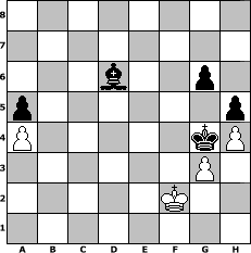 Partie-Notation im PGN-Format [Event "Gegen die Herbstdepression"] [Site "www.mySchach.de"] [Date "2008.12.01"] [Round "1"] [White "andreas007"] [Black "Helmut48"] [ECO "C40"] [WhitemyELO "1402"] [BlackmyELO "1394"] [Result "0-1"] [TimeControl "10/864000"] [WhiteDays "10"] [BlackDays "10"] [MySchachNr "50358"] 1. e4 e5 2. Nf3 Qe7 3. Bc4 f6 4. O-O a6 5. d4 exd4 6. Qxd4 Nc6 7. Qd3 d6 8. Nc3 Nb4 9. Qe2 Qd8 10. Nd5 Nxd5 11. exd5+ Qe7 12. Qxe7+ Nxe7 13. Re1 Bf5 14. Bd3 Bxd3 15. cxd3 O-O-O 16. Nd4 Re8 17. Bd2 Kd7 18. Rac1 Nxd5 19. g3 g6 20. Re4 Rxe4 21. dxe4 Ne7 22. f4 Bh6 23. h4 Re8 24. a4 Nc6 25. Nxc6 bxc6 26. Rc4 c5 27. b4 c6 28. bxc5 dxc5 29. Be3 Bf8 30. Kf2 h5 31. Kf3 Rb8 32. e5 fxe5 33. fxe5 Rb4 34. Rxb4 cxb4 35. Bd4 c5 36. Ba1 c4 37. Ke4 Ke6 38. Kd4 c3 39. Kd3 Kxe5 40. Bxc3+ bxc3 41. Kxc3 a5 42. Kd3 Kf5 43. Ke3 Kg4 44. Kf2 Bd6 0-1 Stellungs-Notation im FEN-Format 8/8/3b2p1/p6p/P5kP/6P1/5K2/8 - - - 6 45 Geschlagene Figuren Weiss: Geschlagene Figuren Schwarz: Klicken Sie auf eine geschlagene Figur um den gewünschten Zug darzustellen!