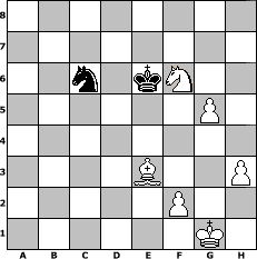 Partie-Notation im PGN-Format [Event "Bremer Schl"] [Site "www.mySchach.de"] [Date "2008.11.01"] [Round "1"] [White "Dragonwolves"] [Black "Baehr008"] [ECO "D15"] [WhitemyELO "2163"] [BlackmyELO "1996"] [Result "1-0"] [TimeControl "10/2592000"] [WhiteDays "193"] [BlackDays "196"] [MySchachNr "49421"] 1. d4 d5 2. c4 c6 3. Nf3 Nf6 4. Nc3 e6 5. e3 Nbd7 6. Bd3 dxc4 7. Bxc4 b5 8. Bd3 a6 9. e4 c5 10. d5 exd5 11. e5 Ng4 12. Bg5 f6 13. exf6 gxf6 14. Qe2+ Kf7 15. h3 Nh6 16. Bf4 Nb6 17. O-O Nf5 18. Rfd1 Ra7 19. a4 b4 20. a5 bxc3 21. axb6 Qxb6 22. bxc3 Qe6 23. Qd2 Rg8 24. Re1 Qd7 25. Qd1 Rg7 26. Nh2 Kg8 27. Qh5 Qf7 28. Ng4 Qxh5 29. Nxf6+ Kf7 30. Nxh5 Rg6 31. Re5 Ne7 32. Be3 Rc7 33. Bg5 Rg8 34. g4 h6 35. Bd2 Rh8 36. Re3 Rc6 37. Rf3+ Kg8 38. Bf4 Re6 39. Be3 Rc6 40. Ra5 c4 41. Bc2 Re6 42. Rc5 Nc6 43. Rxd5 Re5 44. Rd1 Be7 45. Rf4 Be6 46. Be4 Rxe4 47. Rxe4 Kf7 48. Nf4 Bc8 49. Rxc4 Bb7 50. Rd7 Ne5 51. Rxe7+ Kxe7 52. Rc7+ Kd6 53. Rxb7 Rc8 54. Rh7 Rxc3 55. Rxh6+ Kd7 56. Rxa6 Rc2 57. Nd5 Rc6 58. Nf6+ Ke6 59. Rxc6+ Nxc6 60. g5 1-0 Stellungs-Notation im FEN-Format 8/8/2n1kN2/6P1/8/4B2P/5P2/6K1 - - - 0 60 Geschlagene Figuren Weiss: Geschlagene Figuren Schwarz: Klicken Sie auf eine geschlagene Figur um den gewünschten Zug darzustellen!