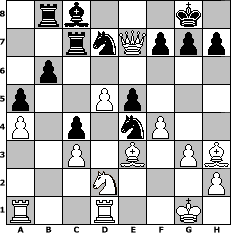 Partie-Notation im PGN-Format [Event "Vereinsmeisterschaft"] [Site "www.mySchach.de"] [Date "2006.08.24"] [Round "2"] [White "BirdofPray1"] [Black "bjeu"] [ECO "A05"] [WhitemyELO "2115"] [BlackmyELO "2177"] [Result "1-0"] [TimeControl "10/2592000"] [WhiteDays "68"] [BlackDays "69"] [MySchachNr "27963"] 1. Nf3 Nf6 2. g3 b6 3. d3 d5 4. Bg2 Bb7 5. O-O e6 6. c4 Nbd7 7. cxd5 Nxd5 8. e4 N5f6 9. Nc3 Be7 10. Re1 O-O 11. d4 a5 12. Bf4 Rc8 13. Nd2 c5 14. d5 e5 15. Be3 c4 16. a4 Ba6 17. Bh3 Bb4 18. Qf3 Rc7 19. Red1 Qe7 20. Rac1 Bxc3 21. bxc3 Rb8 22. Ra1 Ne8 23. Qh5 Nef6 24. Qh4 Bc8 25. f4 Nxe4 26. Qxe7 1-0 Stellungs-Notation im FEN-Format 1rb3k1/2rnQppp/1p6/p2Pp3/P1p1nP2/2P1B1PB/3N3P/R2R2K1 - - - 0 26 Geschlagene Figuren Weiss: Geschlagene Figuren Schwarz: Klicken Sie auf eine geschlagene Figur um den gewünschten Zug darzustellen!