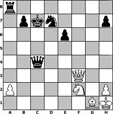 Partie-Notation im PGN-Format [Event "Trainingslager II"] [Site "www.mySchach.de"] [Date "2011.05.24"] [Round "1"] [White "Helmut48"] [Black "Lemmi11"] [ECO "D20"] [WhitemyELO "1880"] [BlackmyELO "1706"] [Result "0-1"] [TimeControl "10/1728000"] [WhiteDays "20"] [BlackDays "20"] [MySchachNr "74130"] 1. d4 d5 2. c4 dxc4 3. e3 Be6 4. Nf3 Nf6 5. Nc3 Nc6 6. Be2 Qd7 7. O-O O-O-O 8. Ng5 Kb8 9. f4 g6 10. Nxe6 Qxe6 11. Qa4 Qd7 12. Bxc4 e6 13. Bd2 Ne7 14. Bb5 c6 15. Bd3 c5 16. Bb5 Qd6 17. Ne2 a6 18. Bd3 cxd4 19. Nxd4 Nfd5 20. Qb3 Bg7 21. Nc2 Qb6 22. Qa4 Rd6 23. Kh1 Qd8 24. Qb3 Qd7 25. e4 Rb6 26. Qa3 Bxb2 27. Qa5 Bxa1 28. Rxa1 Rd6 29. Ne1 Nc6 30. Qa3 Nc7 31. Be3 Nb5 32. Qb2 Rc8 33. Rd1 Na5 34. Bxb5 axb5 35. Rxd6 Qxd6 36. Qxb5 Nc4 37. Bg1 Qd2 38. Nf3 Qxf4 39. e5 g5 40. Qa4 g4 41. Nd4 Qd2 42. Nb3 Qd5 43. Qa7+ Kc7 44. Nc5 Nxe5 45. Na4 Nd7 46. Nc3 Qc4 47. Nd1 f5 48. Qa3 f4 49. Nf2 f3 50. gxf3 gxf3 51. Qxf3 Ra8 0-1 Stellungs-Notation im FEN-Format r7/1pkn3p/4p3/8/2q5/5Q2/P4N1P/6BK - - - 1 52 Geschlagene Figuren Weiss: Geschlagene Figuren Schwarz: Klicken Sie auf eine geschlagene Figur um den gewünschten Zug darzustellen!