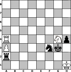 Partie-Notation im PGN-Format [Event "Pedro Damiano"] [Site "www.mySchach.de"] [Date "2016.09.18"] [Round "1"] [White "martinus"] [Black "Helmut48"] [ECO "C40"] [WhitemyELO "1767"] [BlackmyELO "2010"] [Result "0-1"] [TimeControl "10/2592000"] [WhiteDays "205"] [BlackDays "207"] [MySchachNr "104969"] 1. e4 e5 2. Nf3 f6 3. Bc4 Nc6 4. O-O d6 5. d4 Nge7 6. d5 Na5 7. Bb5+ c6 8. Be2 cxd5 9. exd5 b6 10. b4 Nb7 11. Bb5+ Kf7 12. Ba6 Qc7 13. Na3 Nd8 14. Bd3 a6 15. c4 Kg8 16. h3 f5 17. Be2 Ng6 18. Ng5 h6 19. Nf3 Be7 20. Qc2 Kh7 21. Be3 Bd7 22. Rac1 Nf7 23. g4 Qc8 24. Nh2 Ng5 25. c5 dxc5 26. Nc4 Nxh3+ 27. Kh1 Rb8 28. bxc5 Bxc5 29. Bxc5 Qxc5 30. gxf5 Ngf4 31. f6+ g6 32. Nxe5 Qxd5+ 33. Nhf3 Rbc8 34. Bc4 Qb7 35. Qb3 b5 36. Rcd1 Bc6 37. Nxc6 Rxc6 38. Bd5 Nxd5 39. Qxd5 Rc7 40. Qxb7 Rxb7 41. Rd6 Re8 42. Kh2 Nf4 43. Rxa6 Nd3 44. Kg3 Nc5 45. Rc6 Ne4+ 46. Kg2 Rf8 47. Rh1 h5 48. Rb1 Rxf6 49. Rxf6 Nxf6 50. Nd4 b4 51. a3 Nd5 52. Nc6 b3 53. Nb4 Nf4+ 54. Kh2 g5 55. Rxb3 Kg6 56. Re3 Rd7 57. Rc3 h4 58. Nc6 Rd2 59. Ne5+ Kf5 60. Rc5 Rxf2+ 61. Kh1 Ne6 62. Rb5 Nd4 63. Rc5 Ke4 64. Ng4 Ra2 65. Rxg5 Nf3 66. Ra5 Kf4 67. Ra4+ Kg3 0-1 Stellungs-Notation im FEN-Format 8/8/8/8/R5Np/P4nk1/r7/7K - - - 5 68 Geschlagene Figuren Weiss: Geschlagene Figuren Schwarz: Klicken Sie auf eine geschlagene Figur um den gewünschten Zug darzustellen!