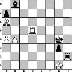 Partie-Notation im PGN-Format [Event "Fruehlingsgefuehle"] [Site "www.mySchach.de"] [Date "2007.03.30"] [Round "1"] [White "HPB2005"] [Black "kischok46"] [ECO "A04"] [WhitemyELO "1996"] [BlackmyELO "1898"] [Result "1/2-1/2"] [TimeControl "10/864000"] [WhiteDays "22"] [BlackDays "50"] [MySchachNr "33845"] 1. Nf3 b6 2. e4 Bb7 3. d3 e6 4. g3 d5 5. Qe2 dxe4 6. dxe4 Nf6 7. Nbd2 Nc6 8. Nc4 b5 9. Ncd2 Nb4 10. Qxb5+ Bc6 11. Qc4 Nxe4 12. Nxe4 Qd5 13. Neg5 Qxc4 14. Bxc4 Nxc2+ 15. Ke2 Nxa1 16. Bf4 h6 17. Nxf7 Bxf3+ 18. Kxf3 Kxf7 19. Rxa1 Bc5 20. Re1 Rhe8 21. Bxc7 Rac8 22. Be5 Bxf2 23. Re4 Bb6 24. h4 Bc7 25. Bd4 Bb8 26. Bc3 g6 27. a4 Bd6 28. Bd2 h5 29. g4 Rc7 30. Bc3 Rc5 31. Ke3 hxg4 32. Bb4 g3 33. Bxc5 Bxc5+ 34. Kf3 Bd6 35. b4 Rf8 36. Kg2 Kg7 37. Rxe6 Rf2+ 38. Kg1 Rd2 39. Re3 Rh2 40. Rd3 Bb8 41. Rd4 Kf6 42. Ba6 g5 43. hxg5+ Kxg5 44. Rd5+ Kg4 1/2-1/2 Stellungs-Notation im FEN-Format 1b6/p7/B7/3R4/PP4k1/6p1/7r/6K1 - - - 2 45 Geschlagene Figuren Weiss: Geschlagene Figuren Schwarz: Klicken Sie auf eine geschlagene Figur um den gewünschten Zug darzustellen!