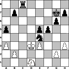 Partie-Notation im PGN-Format [Event "F"] [Site "www.mySchach.de"] [Date "2017.08.16"] [Round "1"] [White "wolni55"] [Black "espero"] [ECO "B06"] [WhitemyELO "1387"] [BlackmyELO "1964"] [Result "0-1"] [TimeControl "10/2592000"] [WhiteDays "70"] [BlackDays "51"] [MySchachNr "109226"] 1. e4 g6 2. d4 Bg7 3. c3 d5 4. e5 c5 5. h3 Nc6 6. Nf3 Bf5 7. Bd3 Be4 8. Bxe4 dxe4 9. Nh2 cxd4 10. cxd4 Qxd4 11. Qxd4 Nxd4 12. O-O Nc2 13. Nc3 Nxa1 14. Nxe4 Bxe5 15. Ng4 Bg7 16. Ne3 Rc8 17. Nc3 f5 18. Bd2 Rd8 19. Rd1 Nf6 20. Be1 Rxd1 21. Ncxd1 Kf7 22. Bc3 Ne4 23. Bxg7 Kxg7 24. Kf1 Rc8 25. Ke2 Nc2 26. Kd3 Nxe3 27. fxe3 e5 28. a3 a5 0-1 Stellungs-Notation im FEN-Format 2r5/1p4kp/6p1/p3pp2/4n3/P2KP2P/1P4P1/3N4 - - - 0 29 Geschlagene Figuren Weiss: Geschlagene Figuren Schwarz: Klicken Sie auf eine geschlagene Figur um den gewünschten Zug darzustellen!