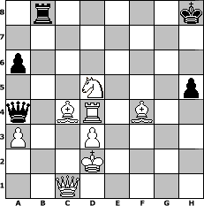Partie-Notation im PGN-Format [Event "Ostern 2011"] [Site "www.mySchach.de"] [Date "2011.03.18"] [Round "2"] [White "lotchi"] [Black "Duschgel"] [ECO "B11"] [WhitemyELO "1413"] [BlackmyELO "1606"] [Result "1-0"] [TimeControl "10/2592000"] [WhiteDays "118"] [BlackDays "114"] [MySchachNr "72838"] 1. e4 c6 2. Nc3 d5 3. Nf3 d4 4. Ne2 c5 5. d3 Nc6 6. a3 e5 7. Bd2 Bg4 8. h3 Bxf3 9. gxf3 Be7 10. c4 Nf6 11. Bg2 O-O 12. f4 Nh5 13. fxe5 Nxe5 14. Qb3 Qc7 15. O-O-O f5 16. f4 Ng6 17. e5 Rab8 18. Bd5+ Kh8 19. Rdg1 b5 20. cxb5 a6 21. Bf3 Rxb5 22. Qc2 Nhxf4 23. Nxf4 Nxe5 24. Bd5 Rfb8 25. Rxg7 Qb6 26. Rhg1 Ng4 27. Rxe7 Rxb2 28. Re8+ Rxe8 29. Qxb2 Qd6 30. hxg4 fxg4 31. Kc2 Rb8 32. Qc1 Qb6 33. Rxg4 c4 34. Bxc4 Qb7 35. Nd5 Qd7 36. Rxd4 h5 37. Bf4 Qa4+ 38. Kd2 1-0 Stellungs-Notation im FEN-Format 1r5k/8/p7/3N3p/q1BR1B2/P2P4/3K4/2Q5 - - - 3 38 Geschlagene Figuren Weiss: Geschlagene Figuren Schwarz: Klicken Sie auf eine geschlagene Figur um den gewünschten Zug darzustellen!