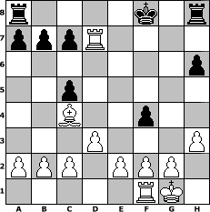 Partie-Notation im PGN-Format [Event "?"] [Site "www.mySchach.de"] [Date "2025.08.24"] [Round "?"] [White "ndziemba"] [Black "skuehnel"] [ECO "C50"] [WhitemyELO "1822"] [BlackmyELO "1361"] [Result "1-0"] [TimeControl "10/2592000"] [WhiteDays "86"] [BlackDays "75"] [MySchachNr "133611"] 1. e4 e5 2. Nf3 Nc6 3. Bc4 Bc5 4. O-O d6 5. h3 f5 6. Nc3 Nf6 7. Ng5 Qe7 8. exf5 Bxf5 9. d3 h6 10. Qf3 Bd7 11. Nd5 Nxd5 12. Qh5+ g6 13. Qxg6+ Kf8 14. Ne4 Nf4 15. Bxf4 exf4 16. Nxc5 dxc5 17. Rae1 Ne5 18. Rxe5 Qg7 19. Qxg7+ Kxg7 20. Re7+ Kf8 21. Rxd7 1-0 Stellungs-Notation im FEN-Format r4k1r/pppR4/7p/2p5/2B2p2/3P3P/PPP1PPP1/5RK1 - - - 0 21 Geschlagene Figuren Weiss: Geschlagene Figuren Schwarz: Klicken Sie auf eine geschlagene Figur um den gewünschten Zug darzustellen!