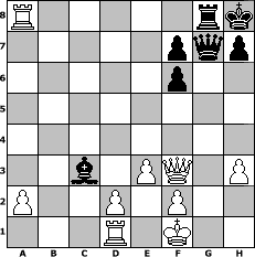 Partie-Notation im PGN-Format [Event "Das Colle System (mit 5.c3)"] [Site "www.mySchach.de"] [Date "2008.10.21"] [Round "1"] [White "ujack1961"] [Black "rkoelbach"] [ECO "D05"] [WhitemyELO "1590"] [BlackmyELO "1508"] [Result "1-0"] [TimeControl "10/2592000"] [WhiteDays "83"] [BlackDays "83"] [MySchachNr "48965"] 1. d4 d5 2. Nf3 Nf6 3. e3 e6 4. Bd3 c5 5. c3 Nc6 6. dxc5 Bxc5 7. b4 Bd6 8. O-O O-O 9. Bb2 e5 10. Bb5 Bg4 11. Bxc6 bxc6 12. h3 Bh5 13. c4 e4 14. g4 exf3 15. gxh5 Nxh5 16. Qxf3 Qh4 17. cxd5 cxd5 18. Rd1 Rad8 19. Rxd5 Nf6 20. Bxf6 gxf6 21. Rd4 Qh6 22. Nc3 Kh8 23. Rd1 Be7 24. Nd5 Rg8+ 25. Kf1 Rxd5 26. Rxd5 Bxb4 27. Rd7 Qg7 28. Rxa7 Bc3 29. Ra8 1-0 Stellungs-Notation im FEN-Format R5rk/5pqp/5p2/8/8/2b1PQ1P/P2P1P2/3R1K2 - - - 2 29 Geschlagene Figuren Weiss: Geschlagene Figuren Schwarz: Klicken Sie auf eine geschlagene Figur um den gewünschten Zug darzustellen!