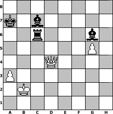 Partie-Notation im PGN-Format [Event "Zu Ehren Bobby Fischer!"] [Site "www.mySchach.de"] [Date "2008.01.23"] [Round "1"] [White "ujack1961"] [Black "Schachfedi"] [ECO "C57"] [WhitemyELO "1704"] [BlackmyELO "1682"] [Result "1/2-1/2"] [TimeControl "10/1728000"] [WhiteDays "115"] [BlackDays "087"] [MySchachNr "41845"] 1. e4 e5 2. Nf3 Nc6 3. Bc4 Nf6 4. Ng5 d5 5. exd5 Nxd5 6. Nxf7 Kxf7 7. Qf3+ Ke6 8. Nc3 Nce7 9. d4 c6 10. Bg5 exd4 11. O-O-O dxc3 12. Bxd5+ cxd5 13. Rhe1+ Kd7 14. Rxd5+ Nxd5 15. Qxd5+ Bd6 16. Bxd8 cxb2+ 17. Kxb2 Rxd8 18. Qf7+ Kc6 19. Qxg7 Rd7 20. Qc3+ Kb6 21. Re6 a5 22. Rh6 a4 23. h4 Kb5 24. Rh5+ Kb6 25. Qc4 Bc7 26. Qb5+ Ka7 27. Qxa4+ Kb8 28. Qe4 Ra6 29. Rxh7 Rb6+ 30. Kc1 Rxh7 31. Qxh7 Bf4+ 32. Kd1 Rh6 33. Qg8 Rxh4 34. f3 Rh1+ 35. Ke2 Rh5 36. g4 Re5+ 37. Kd1 Re3 38. g5 Rxf3 39. Qf8 Kc7 40. c4 Bg4 41. Qc5+ Kb8 42. Kc2 Bg3 43. Qe7 Bf5+ 44. Kb2 Bg6 45. Qd8+ Ka7 46. Qd4+ Ka6 47. Qd5 Rd3 48. Qe6+ Rd6 49. Qe2 Rc6 50. c5+ Ka7 51. Qe3 Bc7 52. a3 b6 53. cxb6+ Bxb6 54. Qe5 Bc7 55. Qd4+ 1/2-1/2 Stellungs-Notation im FEN-Format 8/k1b5/2r3b1/6P1/3Q4/P7/1K6/8 - - - 3 55 Geschlagene Figuren Weiss: Geschlagene Figuren Schwarz: Klicken Sie auf eine geschlagene Figur um den gewünschten Zug darzustellen!