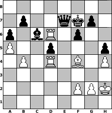 | Partie-Notation im PGN-Format [Event "Blitz Turnier f"] [Site "www.mySchach.de"] [Date "2007.08.31"] [Round "1"] [White "edudoc32"] [Black "kischok46"] [ECO "E10"] [WhitemyELO "1781"] [BlackmyELO "2033"] [Result "0-1"] [TimeControl "10/864000"] [WhiteDays "10"] [BlackDays "10"] [MySchachNr "37710"] 1. d4 Nf6 2. c4 e6 3. Nf3 d5 4. e3 Be7 5. Be2 O-O 6. cxd5 exd5 7. Nc3 c6 8. Bd3 Bd6 9. Qc2 Re8 10. O-O Qe7 11. Nd2 Na6 12. a3 Nc7 13. Re1 Kh8 14. h3 h6 15. b3 a6 16. e4 dxe4 17. Ncxe4 Ncd5 18. Nc4 Bc7 19. Ne5 Nxe4 20. Bxe4 Be6 21. Bxd5 cxd5 22. Bf4 Ba5 23. b4 Bb6 24. Qd2 Qf6 25. Bg3 Bf5 26. a4 Rac8 27. a5 Ba7 28. Ra3 Rc2 29. Ng6+ Bxg6 30. Rxe8+ Kh7 31. Qe1 Bxd4 32. Rf3 Qc6 33. Qe7 Bh5 34. Rf4 f6 35. Rd8 Re2 36. Qxe2 Bxe2 37. Rxd4 Bc4 38. Kh2 Qe6 39. Rd6 Qf7 40. Rb6 Bb5 41. Rd6 Bc6 42. Bf4 Qe7 43. Bg3 h5 44. h4 Kg6 45. Bf4 Kf7 0-1 Stellungs-Notation im FEN-Format 8/1p2qkp1/p1bR1p2/P2p3p/1P1R1B1P/8/5PPK/8 - - - 3 46 Geschlagene Figuren Weiss:                              Geschlagene Figuren Schwarz:                               Klicken Sie auf eine geschlagene Figur um den gewünschten Zug darzustellen!