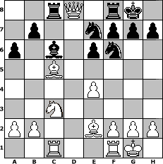 Partie-Notation im PGN-Format [Event "1000 Jahre Schachdorf Str"] [Site "www.mySchach.de"] [Date "2011.08.22"] [Round "1"] [White "Erich"] [Black "Naunhofer"] [ECO "B54"] [WhitemyELO "1926"] [BlackmyELO "1654"] [Result "1-0"] [TimeControl "10/2592000"] [WhiteDays "30"] [BlackDays "30"] [MySchachNr "75672"] 1. e4 c5 2. Nf3 d6 3. d4 cxd4 4. Nxd4 a6 5. c4 Nf6 6. Nc3 e6 7. Be2 Be7 8. O-O O-O 9. Be3 Nc6 10. Rc1 Bd7 11. Nb3 Rc8 12. c5 dxc5 13. Nxc5 Bxc5 14. Bxc5 Ne7 15. Qd4 Bc6 16. Qxd8 1-0 Stellungs-Notation im FEN-Format 2rQ1rk1/1p2nppp/p1b1pn2/2B5/4P3/2N5/PP2BPPP/2R2RK1 - - - 0 16 Geschlagene Figuren Weiss: Geschlagene Figuren Schwarz: Klicken Sie auf eine geschlagene Figur um den gewünschten Zug darzustellen!