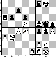 Partie-Notation im PGN-Format [Event "Bremer Schl"] [Site "www.mySchach.de"] [Date "2008.11.01"] [Round "1"] [White "larlinde"] [Black "Phantasos"] [ECO "A48"] [WhitemyELO "2207"] [BlackmyELO "2124"] [Result "1-0"] [TimeControl "10/2592000"] [WhiteDays "60"] [BlackDays "00"] [MySchachNr "49418"] 1. d4 Nf6 2. Nf3 g6 3. c4 Bg7 4. Nc3 O-O 5. e4 d6 6. Be2 e5 7. O-O Nc6 8. d5 Ne7 9. Qc2 b6 10. h3 a5 11. a3 h6 12. Be3 Nd7 13. b4 f5 14. exf5 Nxf5 15. Bd2 Nf6 16. Bd3 Nh5 17. bxa5 Rxa5 18. Nb5 Ra6 19. Rab1 g5 20. Qb3 Nf4 21. Be4 h5 22. Bxf4 exf4 23. Rbe1 g4 24. Bxf5 Bxf5 25. Nfd4 Bxd4 26. Nxd4 Qg5 27. h4 1-0 Stellungs-Notation im FEN-Format 5rk1/2p5/rp1p4/3P1bqp/2PN1ppP/PQ6/5PP1/4RRK1 - - - 0 27 Geschlagene Figuren Weiss: Geschlagene Figuren Schwarz: Klicken Sie auf eine geschlagene Figur um den gewünschten Zug darzustellen!